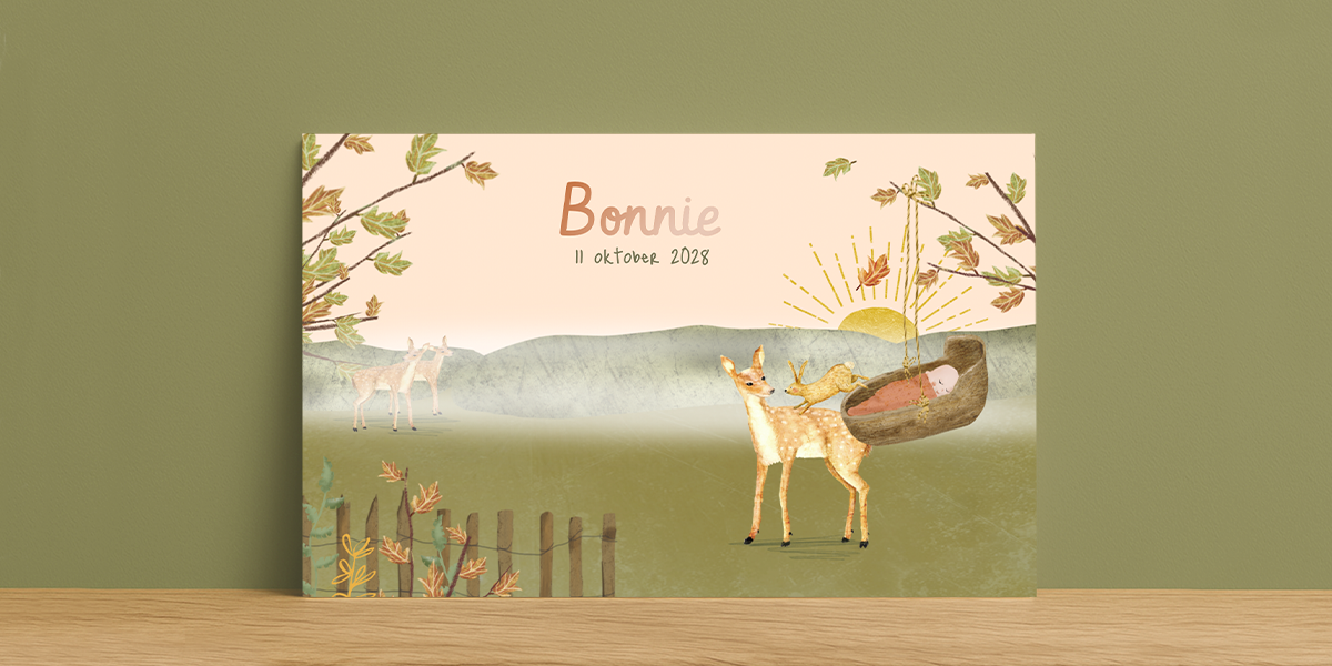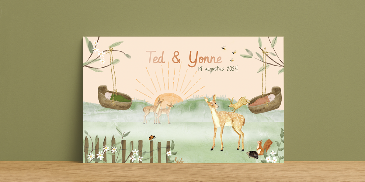 Op zoek naar een geboortekaartje in met dezelfde illustraties?